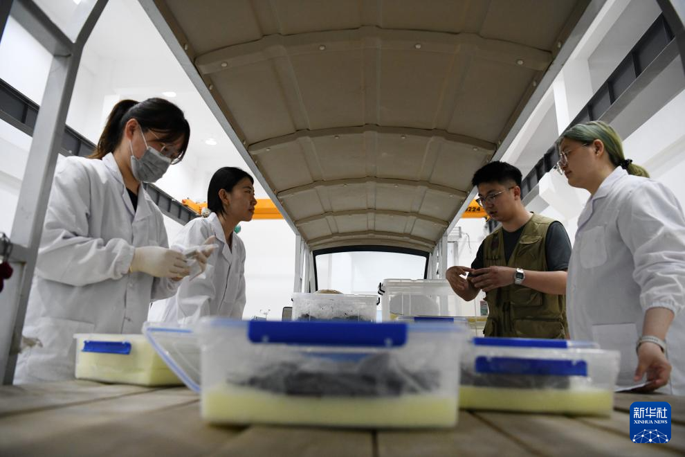 5月20日,考古人员在武王墩考古实验室进行文物保护工作。