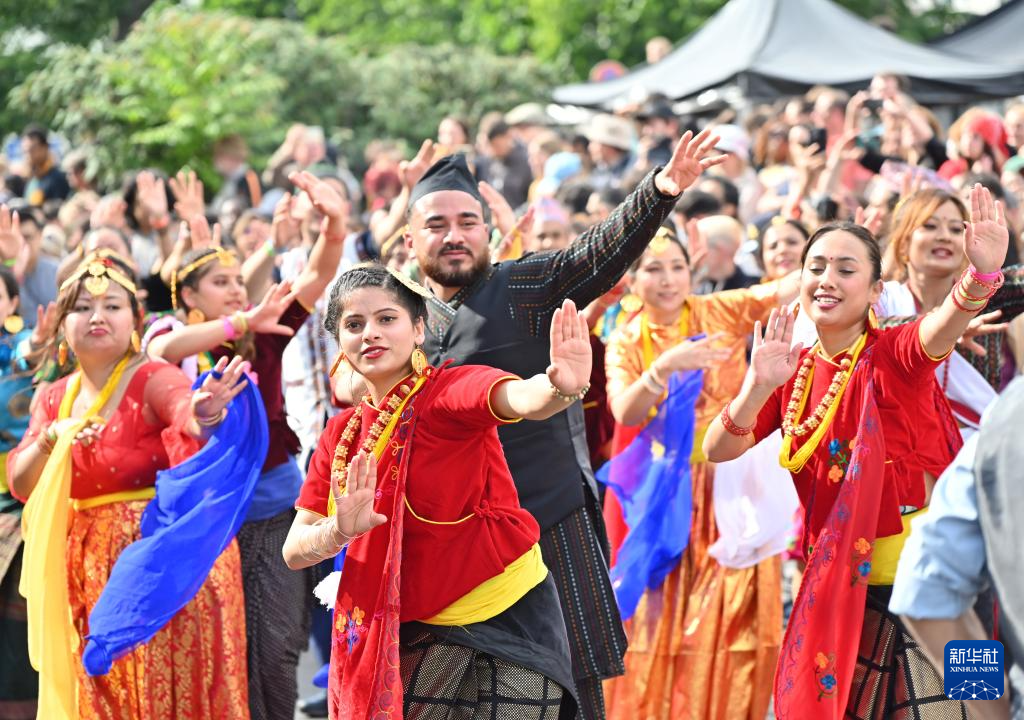 5月19日,来自哥伦比亚的演员参加柏林文化狂欢节大游行。