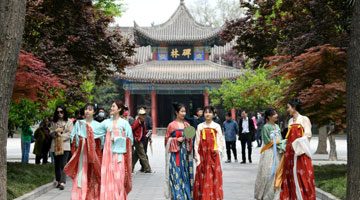 5月22日,太湖小学的学生在非遗传承人的帮助下穿上金溇马灯的表演服装。“金溇马灯”作为吴兴高新区幻溇村当地的特色民俗表演项目,至今已有100余年的历史,是太湖当地百姓逢年过节重要的喜庆民俗活动。