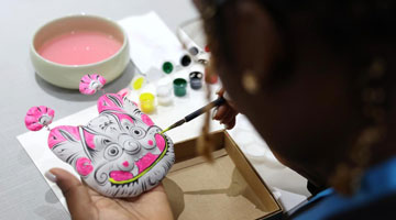 5月22日,太湖小学的学生们在特色课程上学习端午“五彩绳”的编织。