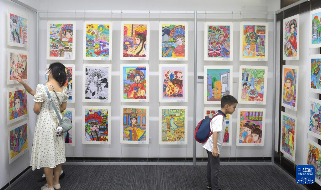 5月25日,市民在广州市文化馆参观乐贤坊小学学生的绘画作品。