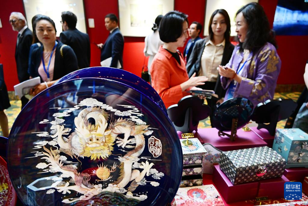 6月19日,与会者在亚洲文化遗产保护联盟理事会第二次会议的非遗展区参观。