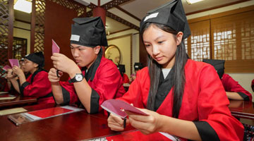 山西科技学院的学生在湘峪古堡写生(7月10日摄)。