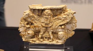 身为导游的湘峪村村民史利在湘峪古堡内为游客讲解(7月10日摄)。