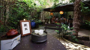 湘峪村村民连小霞在自家的农家乐为游客准备当地传统的“八八宴”(7月9日摄)。