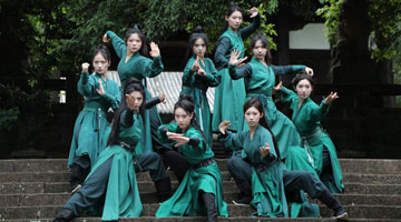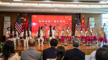 演员在湘峪古堡进行民乐表演(7月9日摄)。
