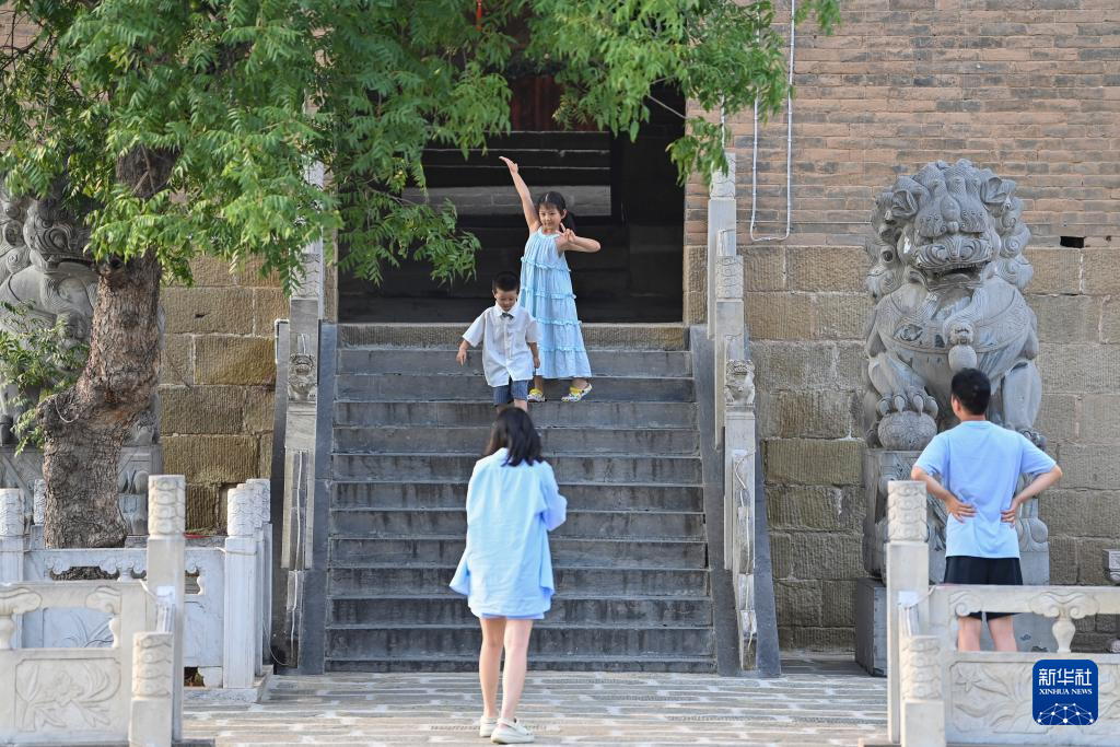 游客参观湘峪古堡(7月11日摄,无人机照片)。