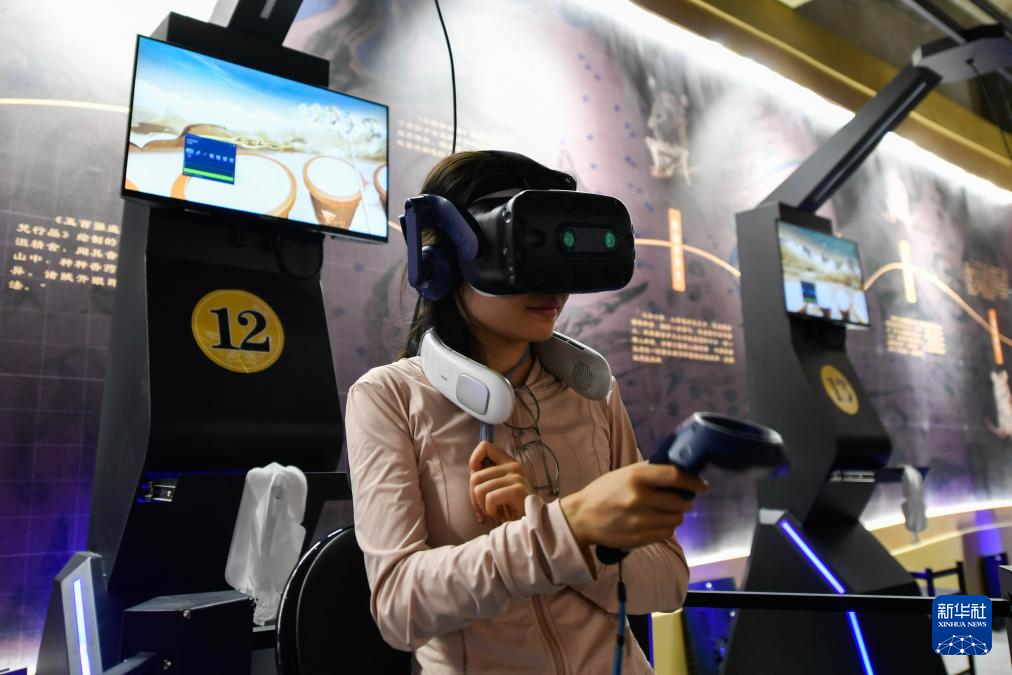 7月22日,游客借助VR设备沉浸式游览莫高窟第285窟虚拟场景。