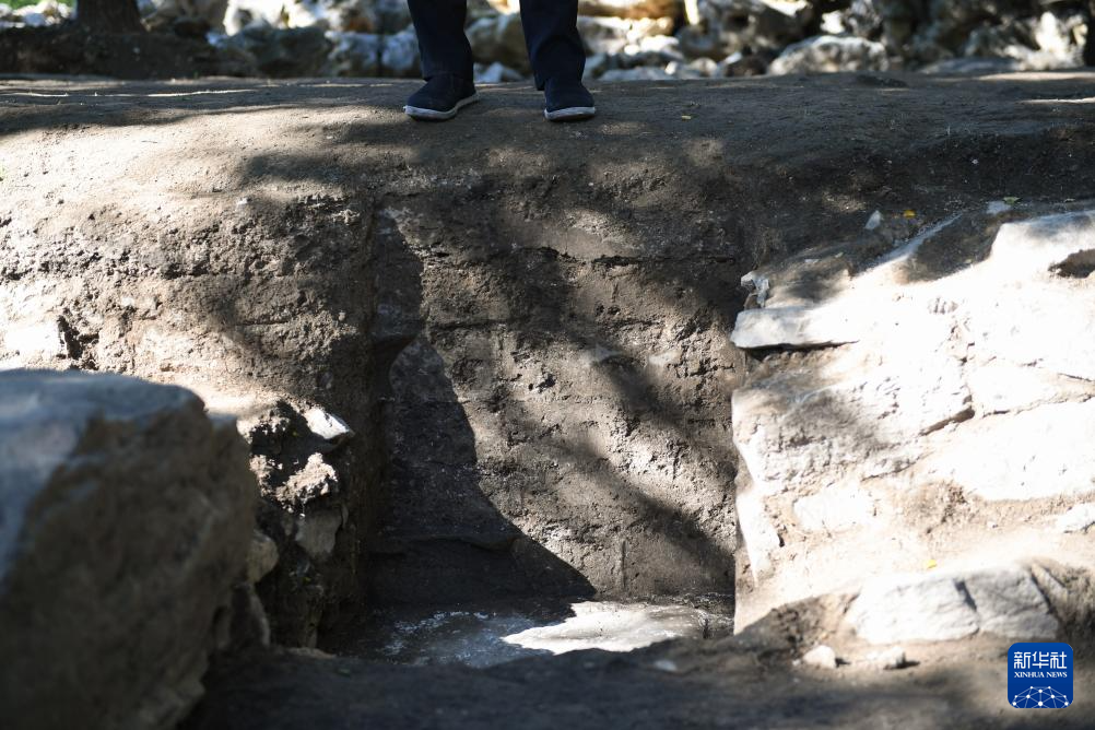 这是9月22日拍摄的文源阁遗址中的磉墩遗迹,可见砖砌痕迹。磉墩是古建中柱的基础,其上方是柱顶石(柱础)。