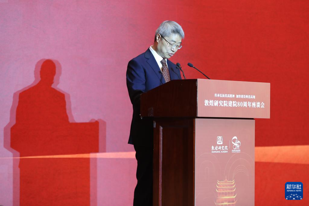 当日,以“传承弘扬莫高精神 加快建设典范高地”为主题的敦煌研究院建院80周年座谈会在甘肃省敦煌市举行。来自敦煌研究院、国家文物局、甘肃省有关部门、国内高校、文博单位以及国内外合作机构的近400名代表参加座谈会。