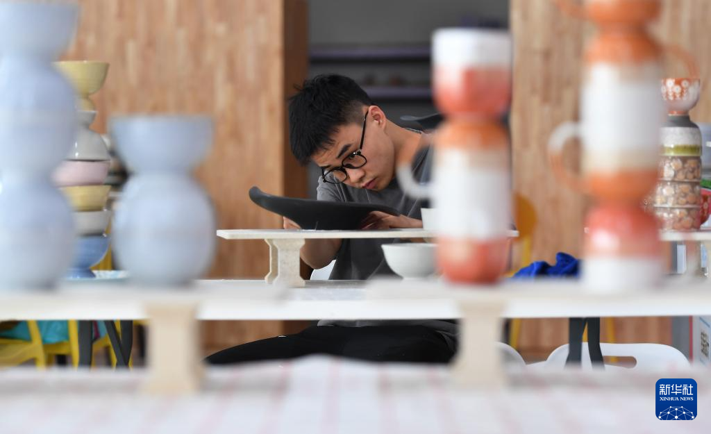 9月27日,醴陵釉下五彩瓷烧制技艺省级非遗代表性传承人申彬在制作陶瓷彩绘。