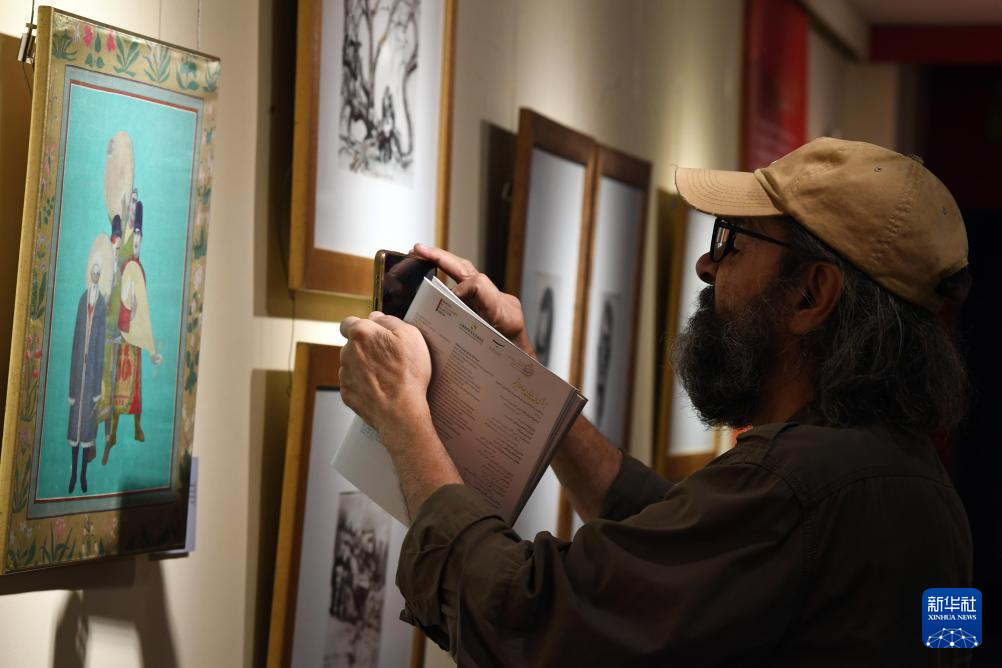 10月12日,一名男子在伊朗首都德黑兰的马利克国家博物馆参观“丝路长云——中国艺术文化精品展”。