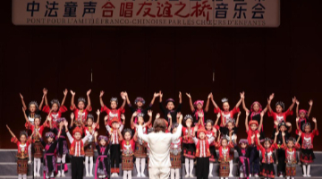 10月25日,法国巴黎宝丽声童声合唱团在“中法童声合唱友谊之桥”音乐会上演唱。
