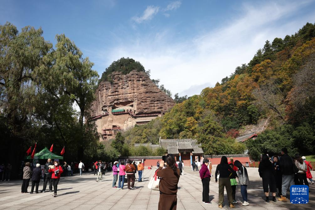 这是11月2日拍摄的麦积山石窟(无人机照片)。