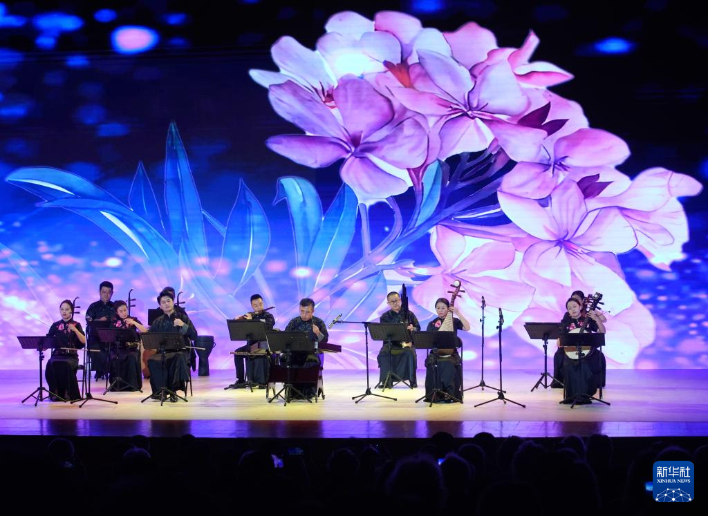 11月6日,演职人员在表演希腊经典曲目《夹竹桃蕾旁》。