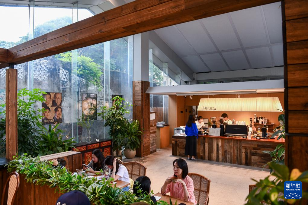 11月9日,游客在长守戏剧谷内的咖啡馆休息。