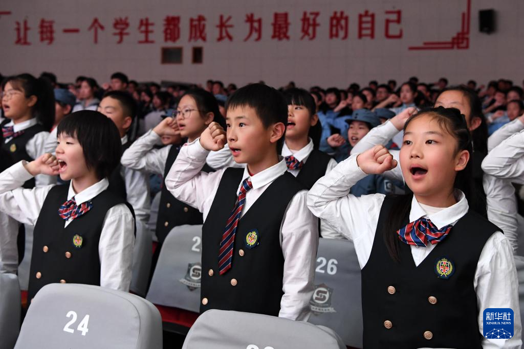 11月13日,在北京市第四中学顺义分校活动现场的思政课上,学生们共同宣誓。