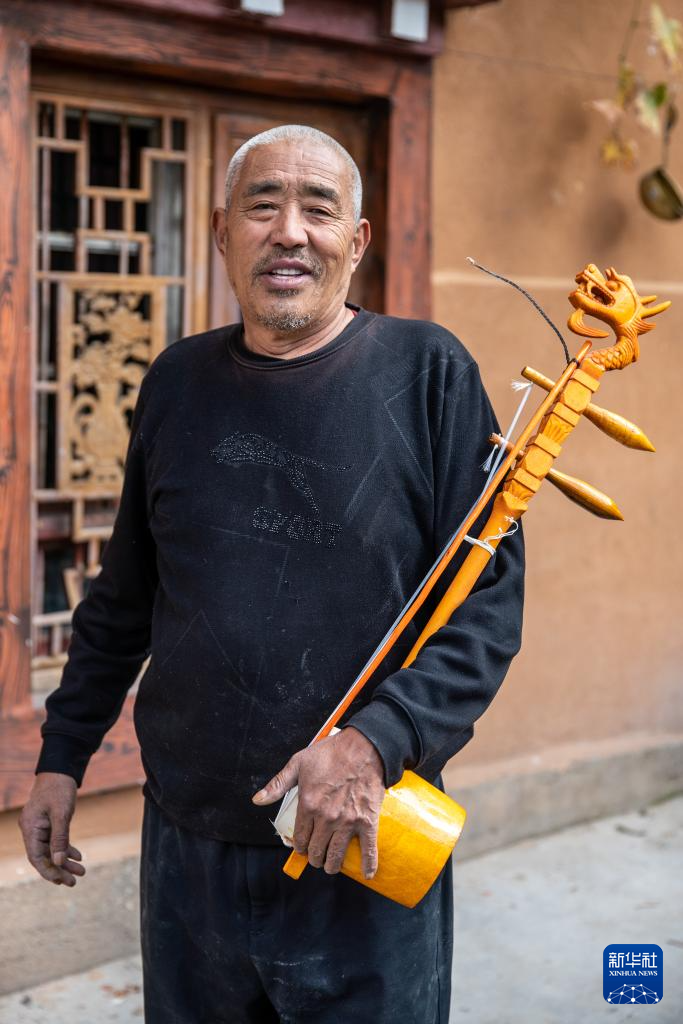 这是11月5日在四川省甘孜藏族自治州巴塘县拍摄的王扎西。在四川省甘孜藏族自治州巴塘县,人们时常跳起弦子舞,这是一种集诗、琴、歌、舞于一体的综合性表演艺术,领舞的弦胡手是表演是否成功的关键。弦胡,通常用柏木做琴筒,在琴杆顶部雕刻龙头宝塔。今年66岁的弦胡手王扎西是“巴塘弦子舞”的省级非遗传承人。为保护并传承弦子舞和弦胡制作技艺,王扎西在自己房屋里建起弦胡制作坊,并在各类活动中表演,展示弦胡的韵律和弦子舞的魅力。