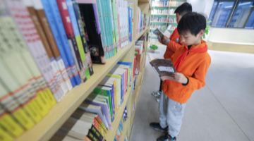 在位于天津古文化街的杨柳青画社,市民游客驻足观看杨柳青年画作品(12月22日摄)。