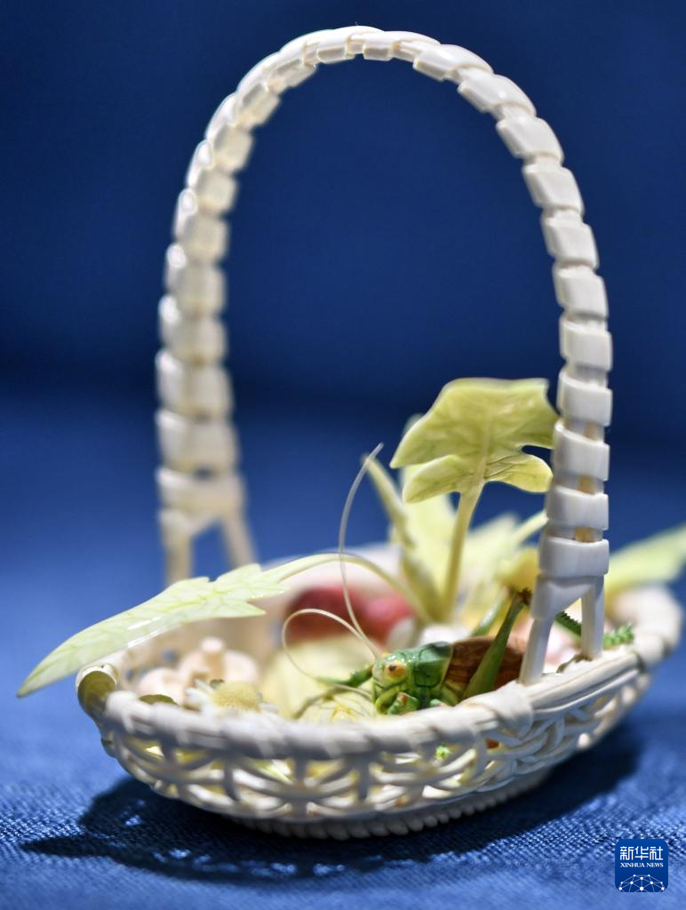 李春珂设计制作的牙雕花篮(猛犸象牙)(12月17日摄)。
