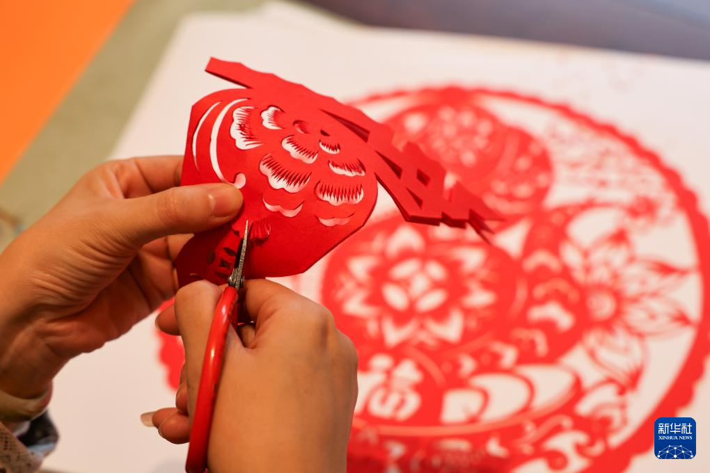 在宁德东侨开发区,剪纸艺人在创作柘荣剪纸(2024年12月4日摄)。