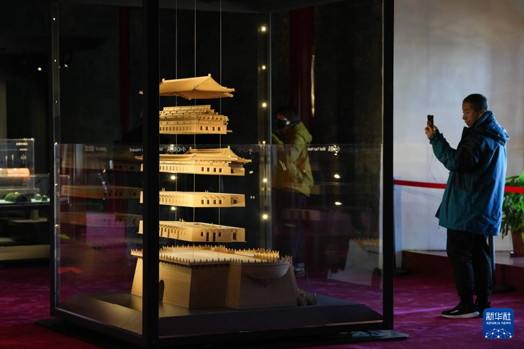12月26日,参观者在正阳门箭楼内参观展出的正阳门箭楼模型。