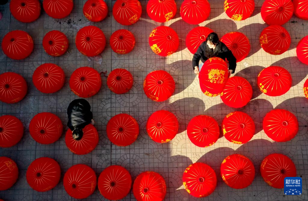 春节临近,河北省多地灯笼制作工坊赶制大红灯笼,供应节日市场。