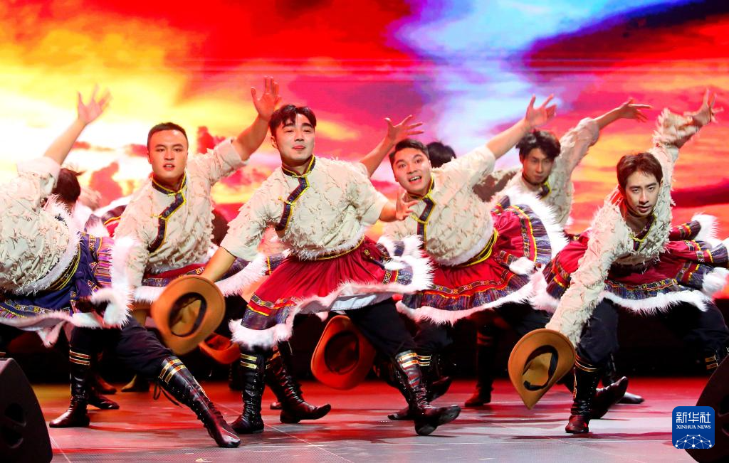 1月20日,在白俄罗斯首都明斯克,来自中国的学生在中白学生春节联欢晚会上表演舞蹈。