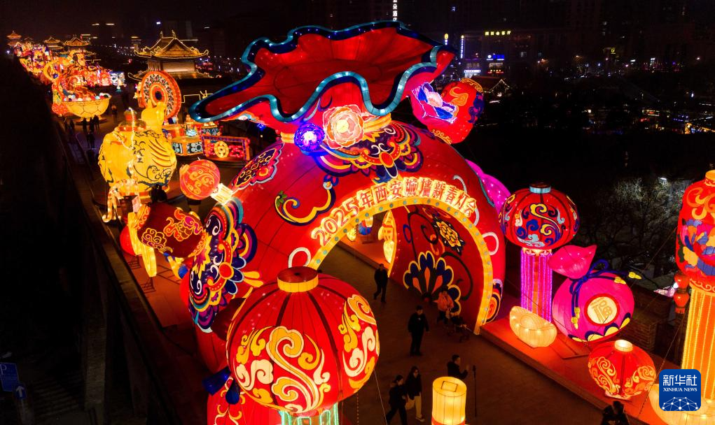 当晚,2025乙巳蛇年“长安灯会”正式启幕,万盏花灯在西安城墙、大唐芙蓉园、大明宫国家遗址公园同步点亮。盛唐特色主题灯组、烟火气十足的国潮集市、光影交织的新春系列演出,为游客带来一场璀璨的新春灯火盛宴。本届灯会以“乙巳中国年,灯映长安春”为主题,持续至3月16日。