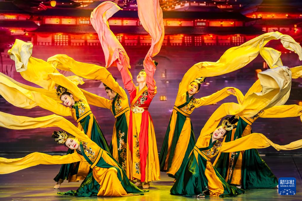 4月1日,昆明城市学院艺术学院的演出人员在表演舞蹈《华夏衣冠》。