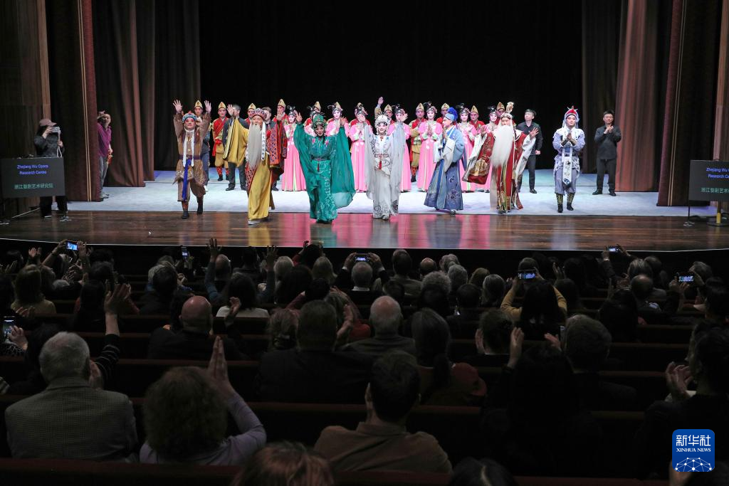 4月5日,在奥地利首都维也纳,观众在婺剧《白蛇传》演出结束后鼓掌。
