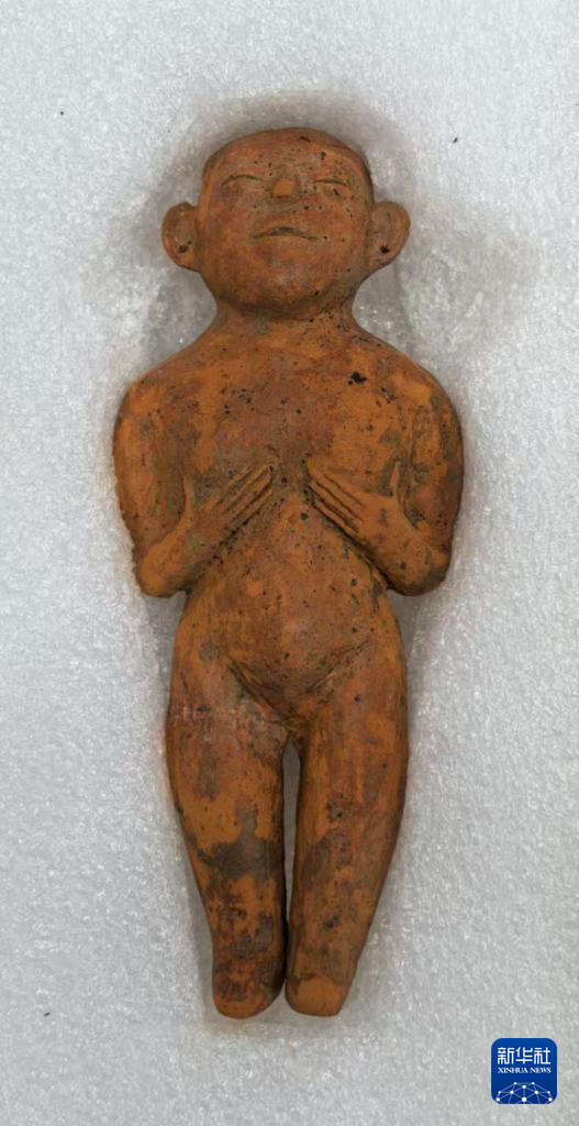 这是东山头遗址出土的红山文化陶塑站姿男俑(资料照片)。