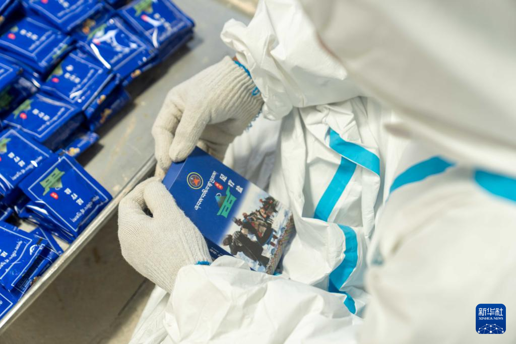 7月20日,革吉县一家粗盐加工厂工作人员在包装盐。
