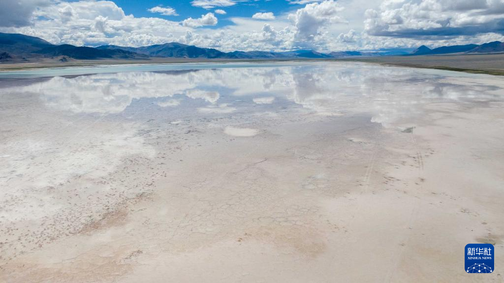 7月20日拍摄的位于西藏阿里地区革吉县的盐湖一景(无人机照片)。