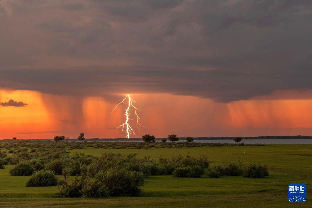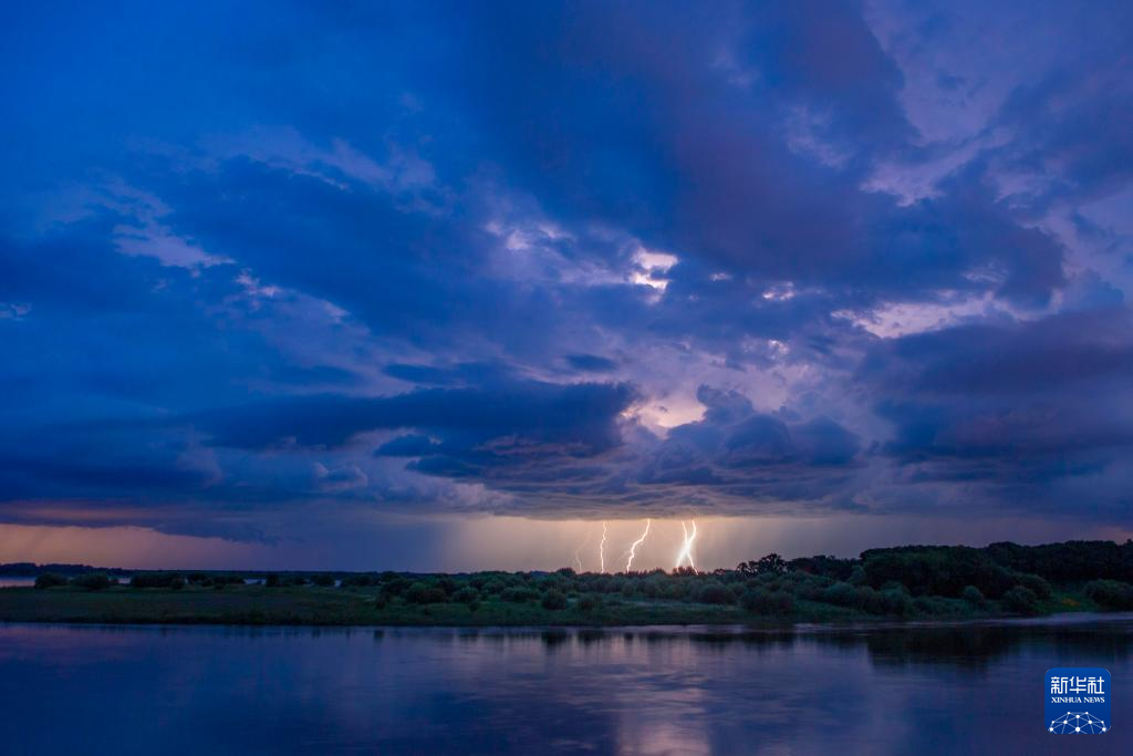 7月21日在黑龙江省大庆市杜尔伯特蒙古族自治县拍摄的雷暴闪电。