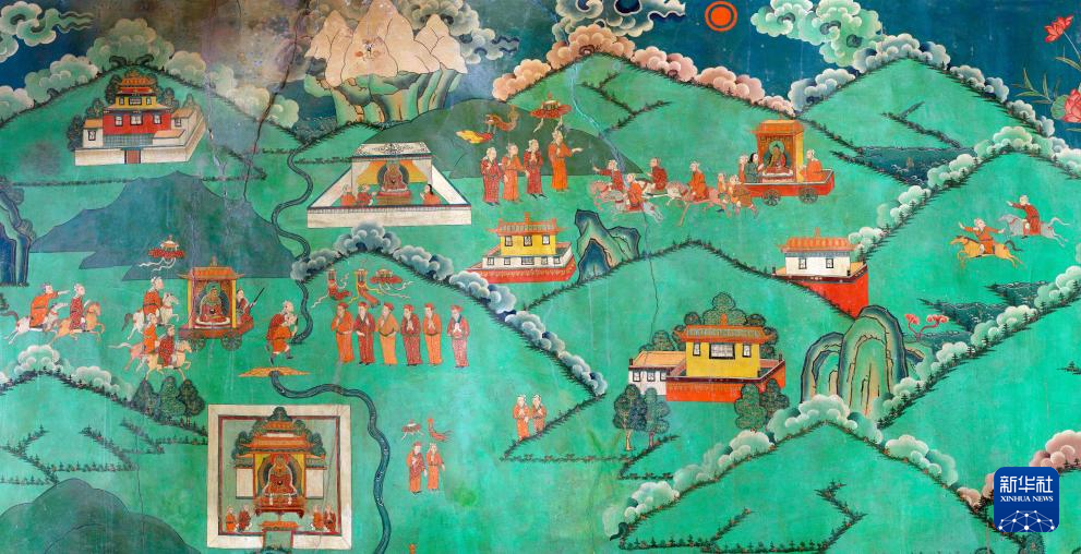 这是布达拉宫壁画,讲述了文成公主进藏“和亲”的画面(资料照片)。新华社发