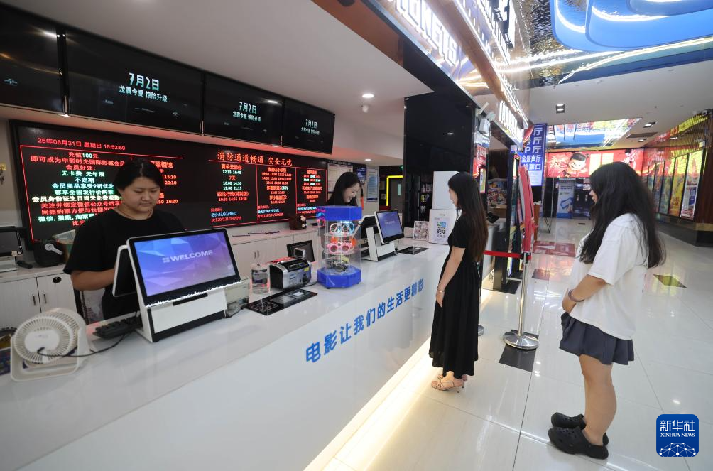 8月31日,在山东省临沂市沂南县中影时光影城,观众在购票。