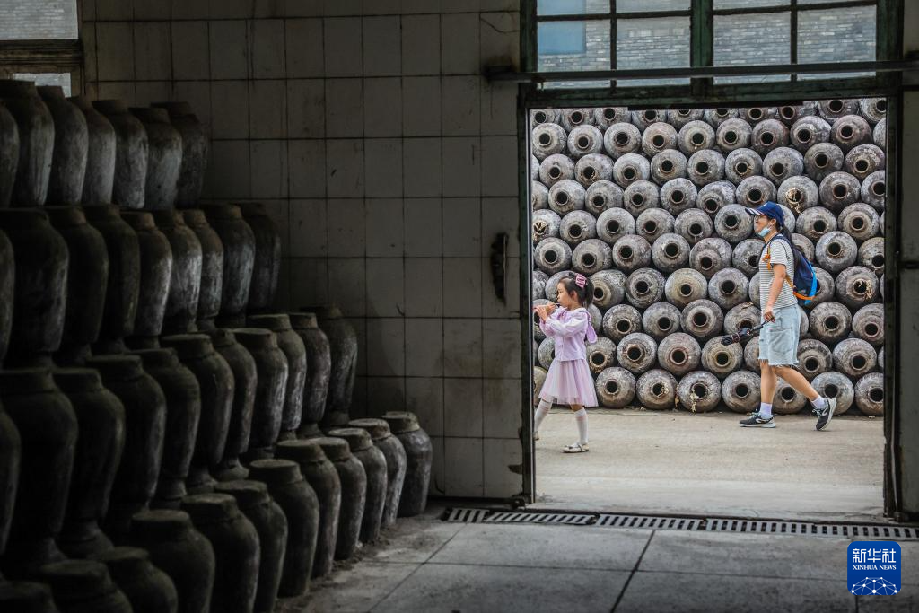 9月20日,游客在游览沈荡镇的中华老字号企业海盐沈荡酿造有限公司。中华老字号企业海盐沈荡酿造有限公司位于浙江省嘉兴市海盐县沈荡古镇,其前身为始创于清光绪年间的泰兴酱园,至今已有100多年历史。近年来,沈荡酿造在坚守传统、古法自然酿造的基础上,结合沈荡古镇旅游开发,配合打造“千年古镇、百年老厂”文旅综合项目,让更多人体验非遗和传统文化的魅力。