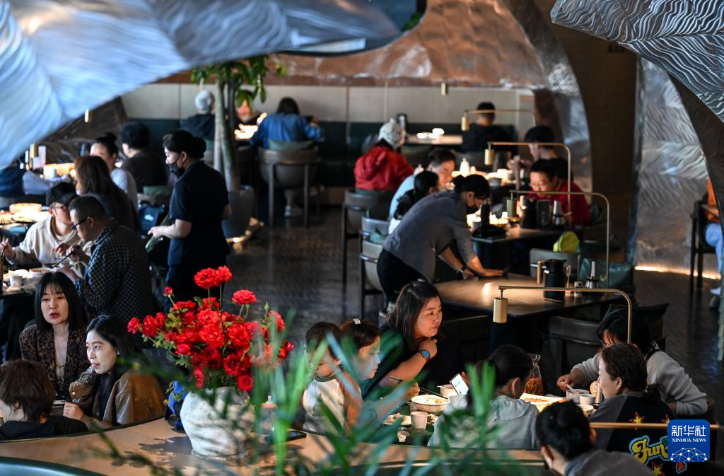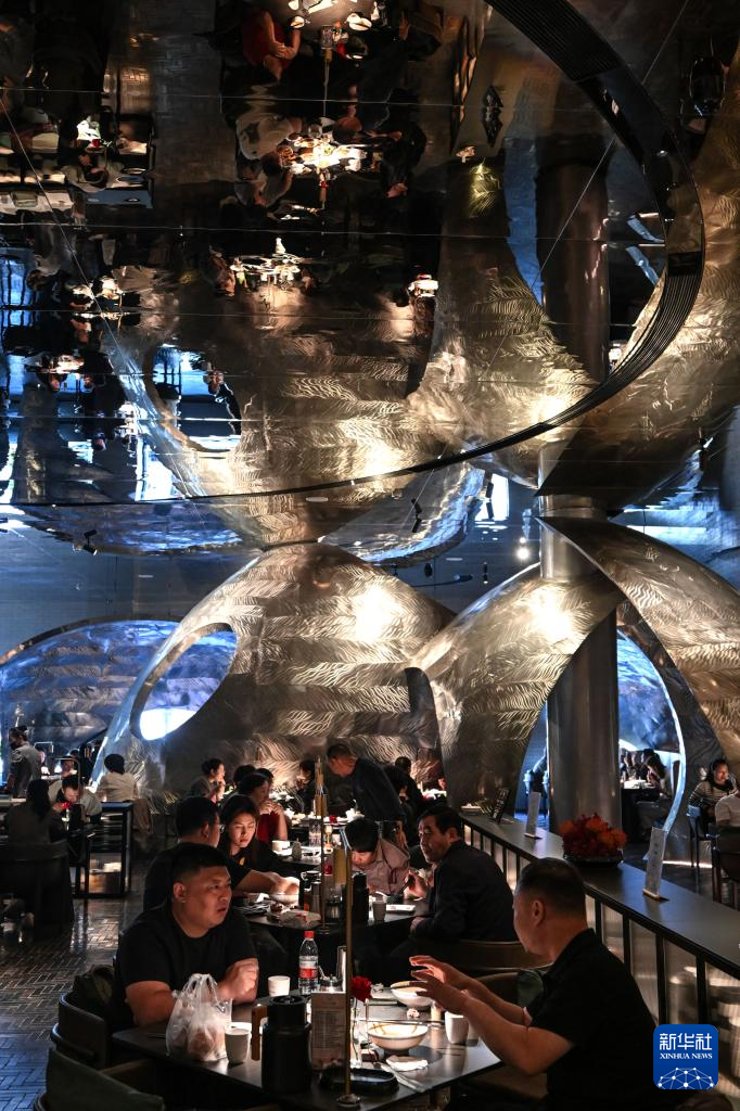 9月24日,顾客在宁夏吴忠市一家早茶店喝早茶、品尝特色小吃和面点。