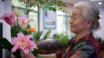 八旬老人付玉兰是这支团队的发起人,退休前,她在安徽农业大学任教,助推了该校在全国较早开设“插花艺术” 课程,她还常态化举办学生插花作品展,受到校内外关注。