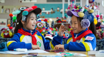 10月26日,小朋友们在展示自己的妆造。