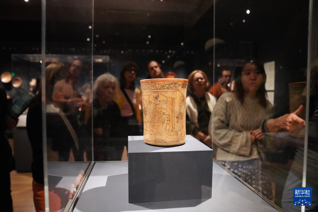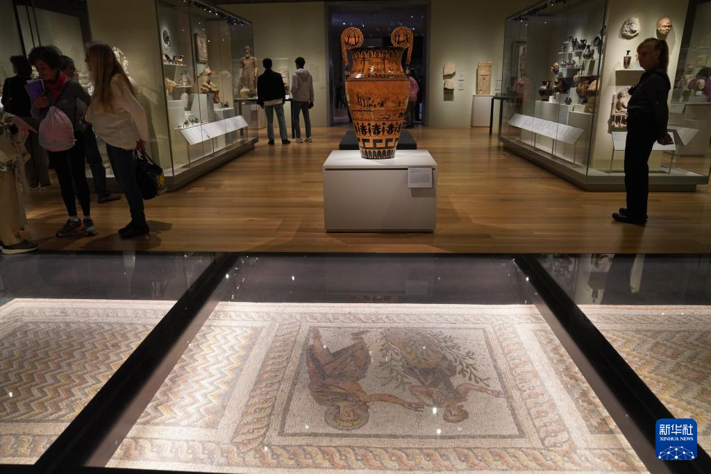 11月1日,在美国新泽西州,人们在普林斯顿大学艺术博物馆欣赏一件古希腊饮水杯。