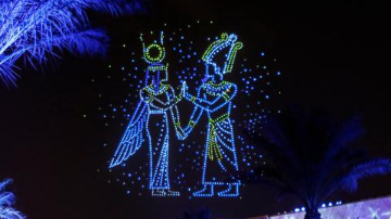 演员在美国纽约林肯剧院表演《大梦敦煌》片段(2020年1月9日摄)。