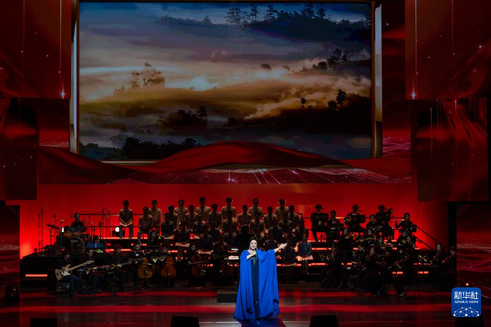 12月16日,在北京二七剧场举办的“中国梦·劳动美”2026新年音乐会上,演员在大合唱《亿万职工心向党》中歌唱。