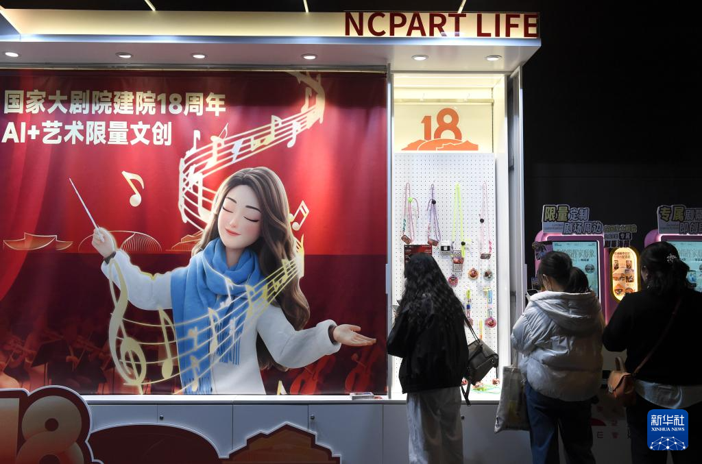 12月22日,演员在国家大剧院公共空间与观众互动。