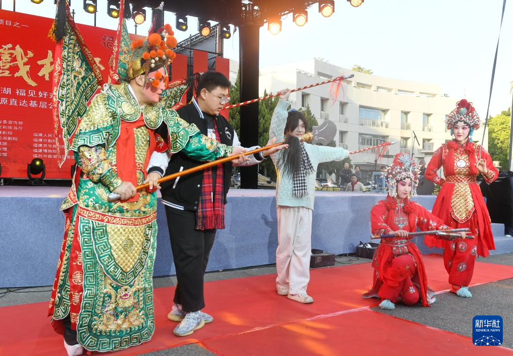 1月10日,在福州西湖公园“周末戏相逢”福建优质文化文艺资源直达基层公益性演出现场,演员与市民开展互动。