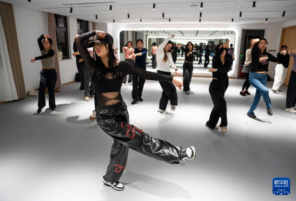 1月19日,在苏州市工人文化宫艺校楼的舞蹈房内,舞蹈老师为学员教授爵士舞。