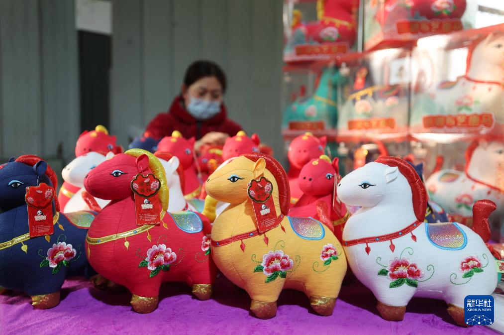 1月16日,在山东省临沂市沂南县界湖街道一家玩具生产企业,工人在制作国潮布艺唐马。