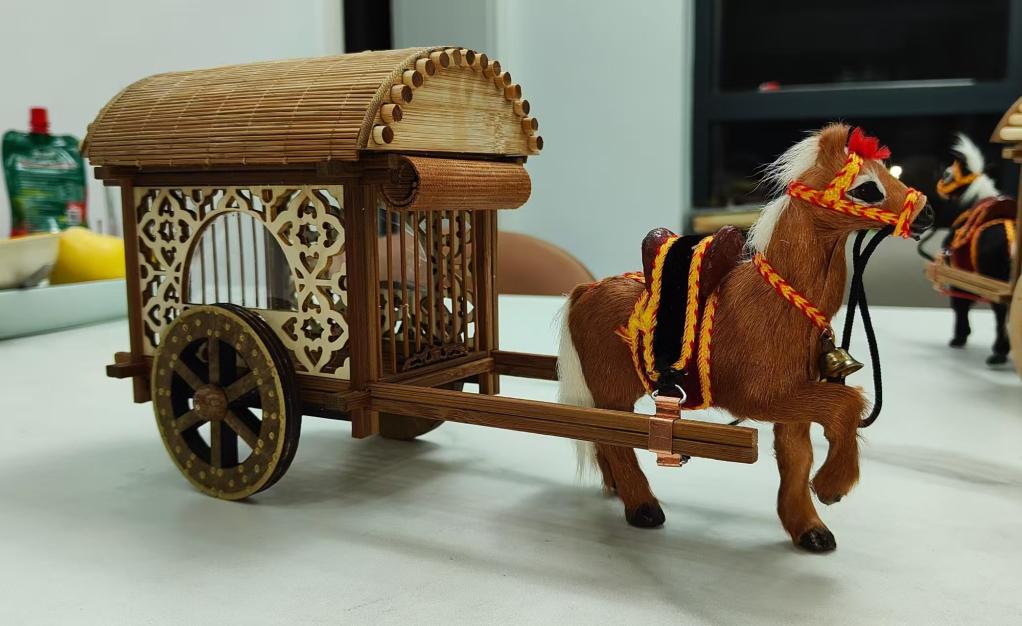 张春晖表示,其作品恪守以竹为材、榫卯咬合、不施一钉一胶的技艺精髓,将生肖文化与现代审美巧妙融合。其中,扎香载韵马车以细腻竹条精心构筑,主框架六根立柱通过榫卯结构精准咬合,既保证了整体结构的严谨稳固,又尽显造型的轻盈灵动,与马年新春主题相得益彰。目前,这批纯手工打造的马年主题扎刻文创作品,定制订单已逾百件。(记者王昆)