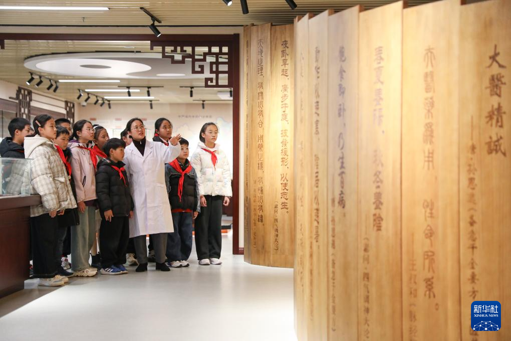 3月15日,江苏省海安市南屏小学学生走进市中医院中医药博物馆,在中药师带领下辨识中药材、观看中药丸制作展示,体验中医药文化。